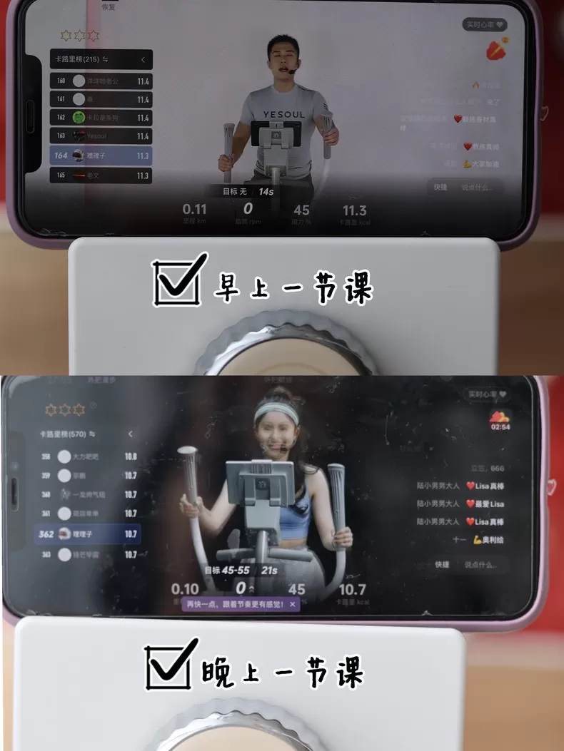 为什么减肥选择野小兽Super3椭圆机?第一:野小兽APP每天都有在线课程,我约了上午、下午各一节,每天跟着练两节课,有燃脂模式,有翘臀模式,跟着教练比自己练更有动力。