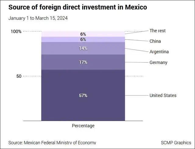 今年年初至3月15日,墨西哥的外商直接投资名单中,中国已经从去年的前十开外上升到第四,约占总量6%。过去两年,特斯拉墨西哥超级工厂的计划也吸引了一批中国供应商前赴后继,而今年,比亚迪、上汽、奇瑞等整车企业也计划赶赴墨西哥。