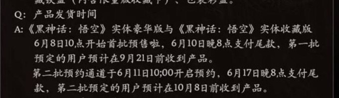 6月7日高考首日黑神话就传来这么个消息,游戏科学准备上架《黑神话悟空》实体豪华版与实体收藏版,价格分别是豪华版820元,收藏版1998元,预售时间是6月8日上午10点,6月10日晚8点支付尾款!这么说马上大家就有可能买买买了!?