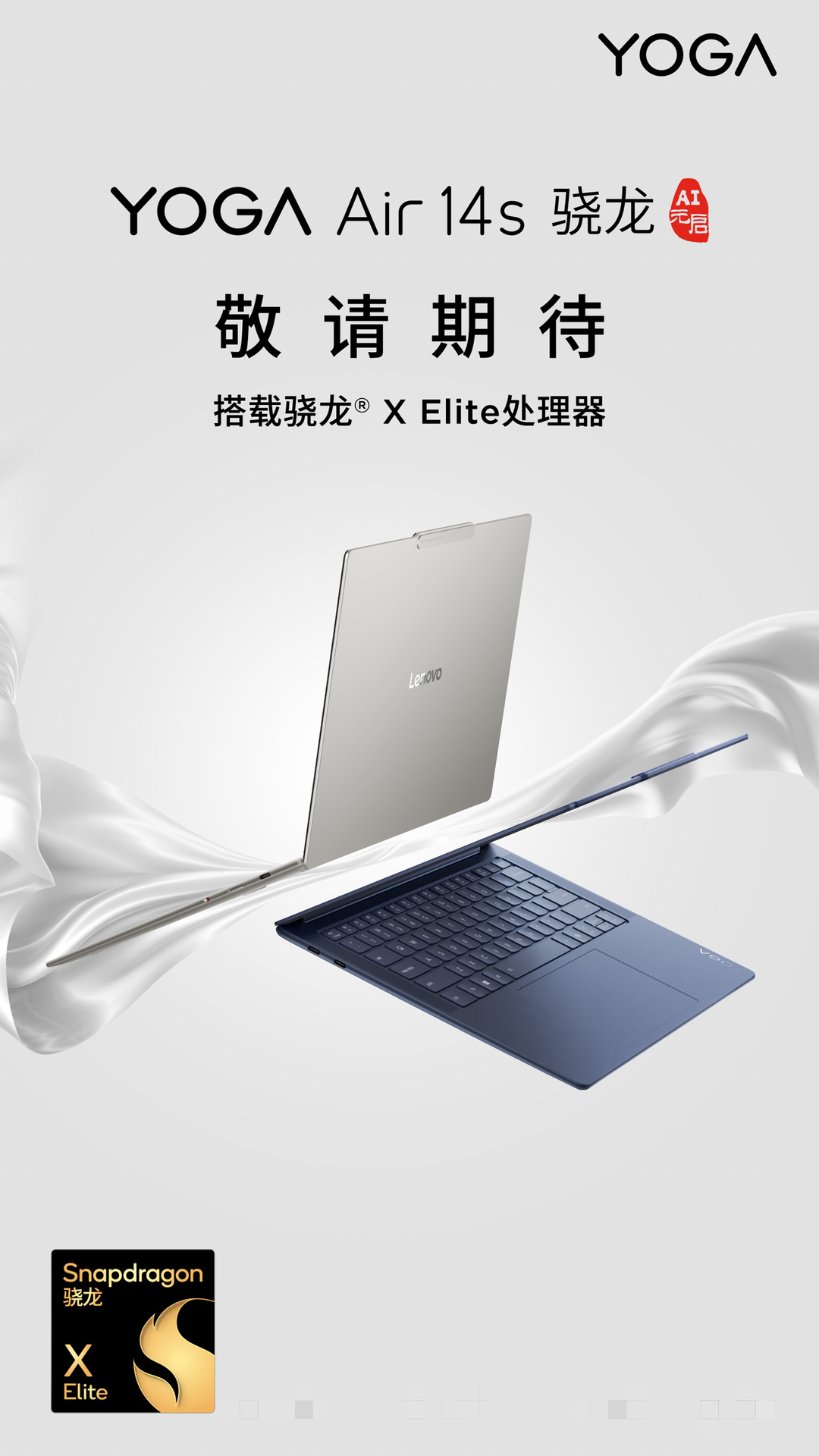 日前,联想官方公布了全新联想YOGA Air 14s骁龙版轻薄本,宣称搭载高通骁龙 X Elite处理器,将带来超越想象的续航与性能体验,及可谓惊艳的轻薄感知体验。同时,还预告该产品即将上市。