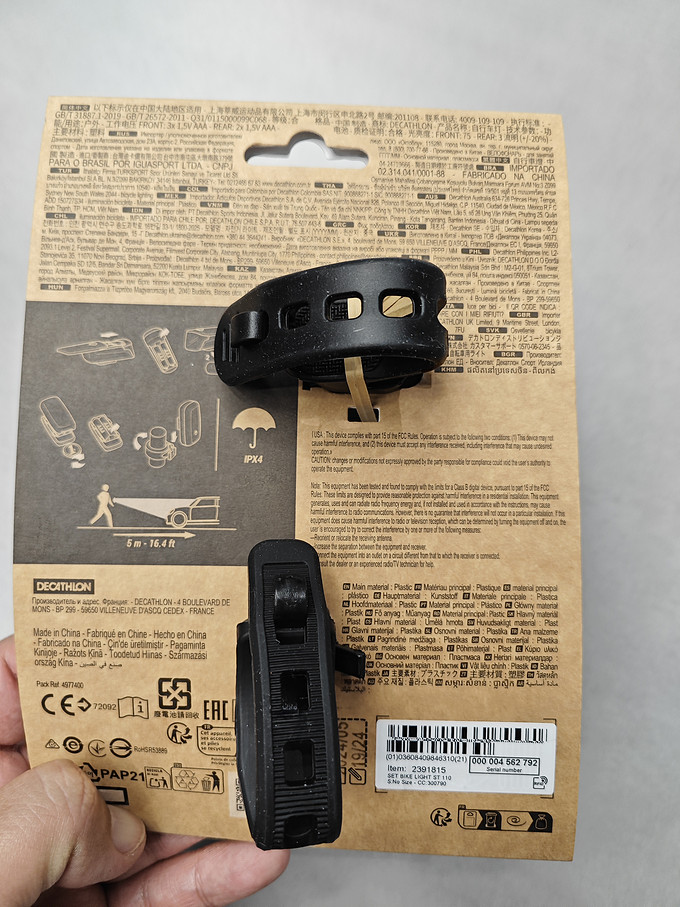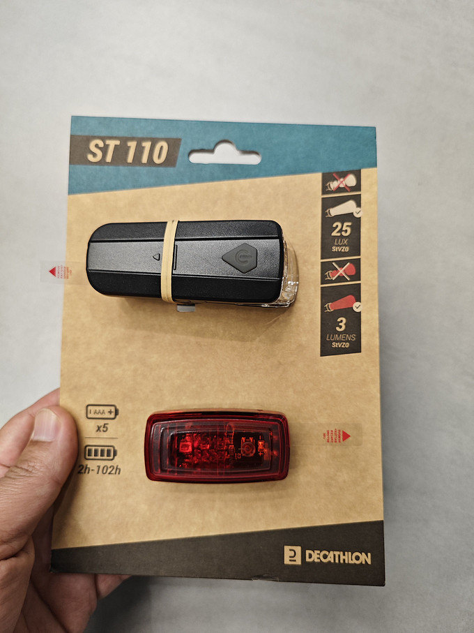 迪卡侬自行车前后灯,持久照明,安全骑游!为了夜间骑行安全,安装一款自行车前后灯非常有必要,推荐迪卡侬这款照明灯,它有前灯和后灯组成,前灯由3节电池供电,可以照亮前方道路,后灯为2节电池供电,主要夜间起到提示作用,续航持久,电池可用5-10小时。