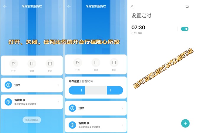作为智能产品,米家智能窗帘2无需额外网关即可实现窗帘的智能化控制,配网即用,降低了用户的使用门槛,再搭配其他智能平台和智能音箱,轻松实现多种智能联动的操作。