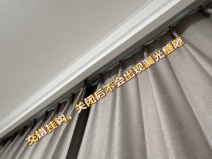 窗帘可支持单开/双开,中间带有交错挂钩,更是让窗帘关闭后不会出现漏光缝隙,整个产品设计和安装体验非常不错。