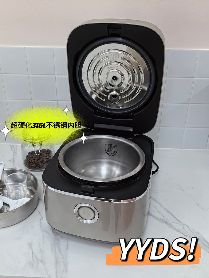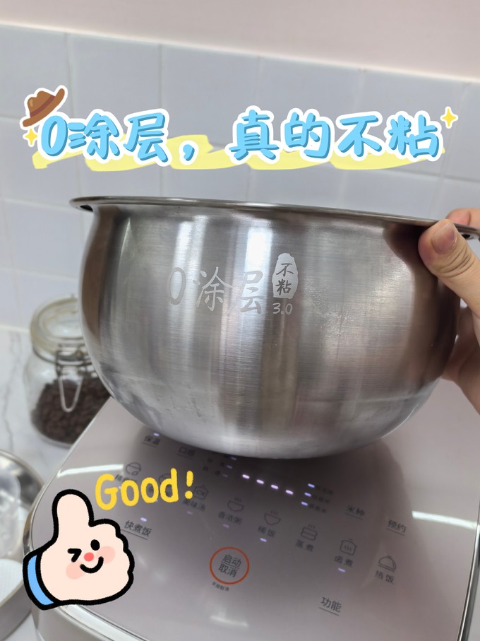 这一点对于负责煮饭的领导来说比较无感,但对于负责刷碗的我来说就显得十分重要了!由于这个小家伙有着“不粘锅”的特性加持,每次蒸完饭用清水简单刷洗就干净了,同时因为它的内胆采用了更耐磨的超硬化316L不锈钢材质,做到了真正的0涂层,在清洁的时候完全不用担心会把它的涂层刮掉,负责刷锅的我表示很开心!