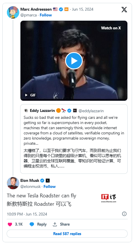 IT之家 6 月 16 日消息,埃隆・马斯克再次宣称,特斯拉那辆被外界戏称为“永远在明年推出”的 Roadster 2 将能够飞行。