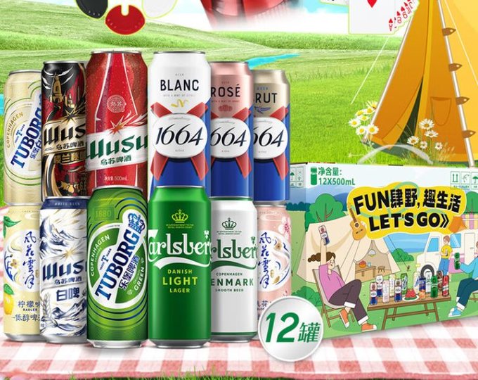 本季新品Kronenbourg 1664啤酒踏青纷享装,不仅带给你清新爽口的精酿小麦啤,更有12种口味混合装,让你在户外露营时尽情享受啤酒的多样乐趣。无论是与好友一起烧烤,还是在野外露营,Kronenbourg 1664啤酒踏青纷享装都能成为你户外活动的完美伴侣。
