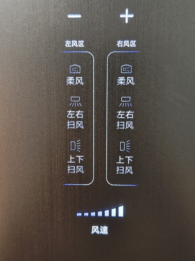 双出风口的设计非常合理,160度广角能明显感觉到靠谱,不论是天幕风还是地毯风,整体给风感官都比较柔和,不会让人感觉到风很硬。
