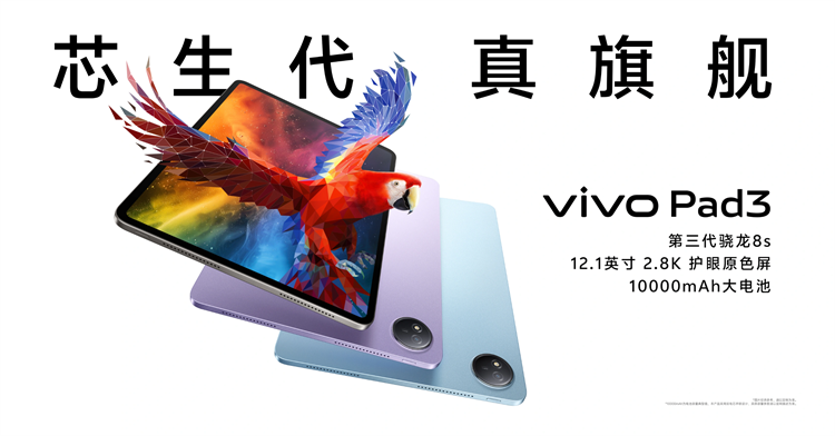 今日,vivo Pad3平板正式发布,搭载骁龙8s Gen3移动平台,首发价2499元起。