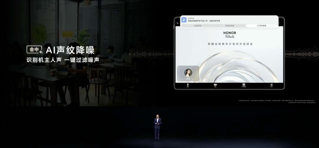 针对办公场景,以AI赋能软件,支持任意门一拖生成会议日程,快速入会;AI声纹降噪功能,主动识别机主人声,一键过滤杂音;AI语音转文本,自动排版记录超高效;AI会议纪要智能总结文本,纪要秒出;AI赋能荣耀笔记,丰富笔记工具,高效助力内容创作。