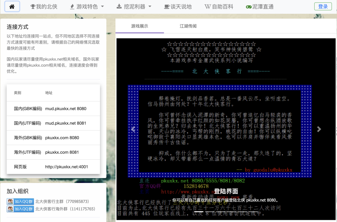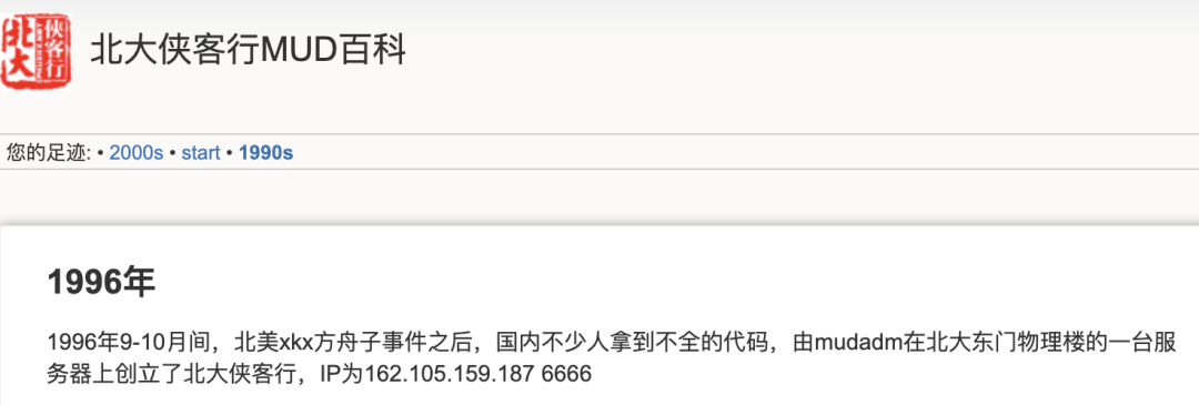 参与建设游戏的也有很多清北的大佬,像是《 北大侠客行 》在任时间最长的管理者 icer ,就是北大 1994 年计算机系的学生。当时担任管理者的 xuan 也是北大人,他是《 北大侠客行 》初任管理 mudadm 的学弟。