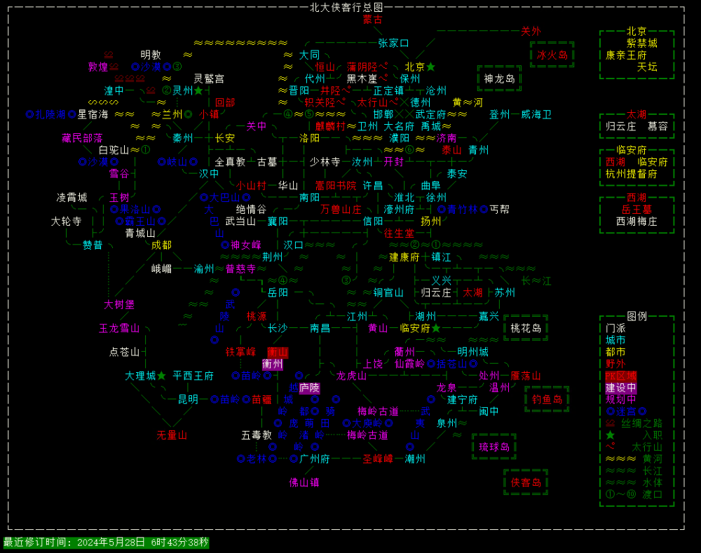 经过将近 30 多年的更新的《 侠客行 》,拥有了十分庞大且详细的剧情脉络,一两句话我还真说不清楚,你不妨看看它现在的总地图,大概也能猜到这游戏发展到啥样了。
