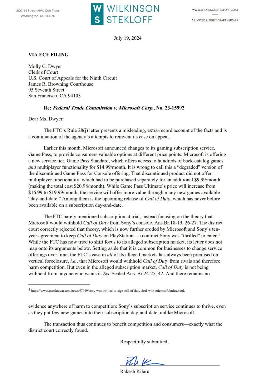 据 7 月 20 日最新媒体消息,微软公司今天向美国上诉法院提交反诉文件,就 Xbox 涨价事件,认为美国联邦贸易委员会(FTC)此前提交的文件存在“误导性”。