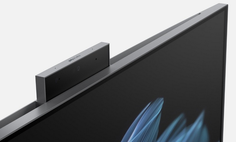 整体设计简约,银灰色金属机身,三边窄边框,支架可以多向调节。另外,顶部还有个升降式摄像头,500万像素,支持IR红外识别,支持Win hello 面部识别登陆。而且还内置传感器,放离开桌面会自动休眠/睡眠,靠近自动唤醒。