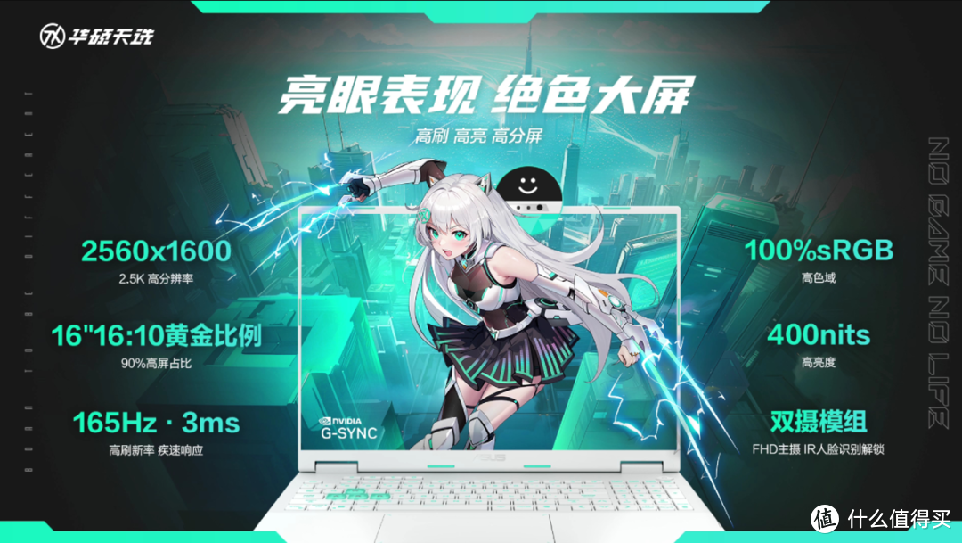 屏幕方面,采用16英寸16:10黄金比例,具备2.5K高分辨率、165Hz高刷新率、3ms疾速响应、100% sRGB色域覆盖,再加上G-SYNC防撕裂技术,满足游戏、创作以及观影等各类视觉需求。