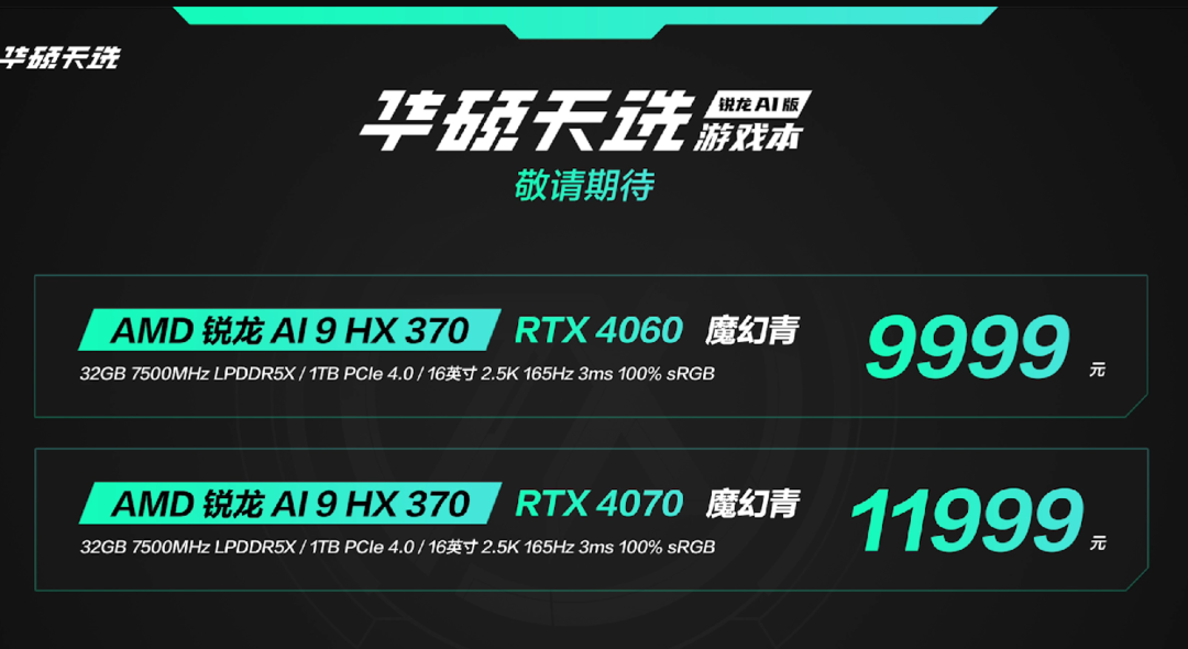 华硕天选锐龙AI版有两个配置,售价9999元起,暂时还没有上架,等等看。