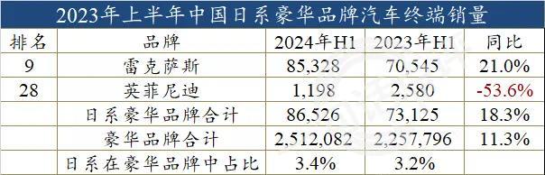 进入今年,随着终端继续放价,再加同期基数较低,上半年雷克萨斯售出8.3万辆,同比增长21.0%,是整个豪华车市场中唯二增长的传统豪华品牌。