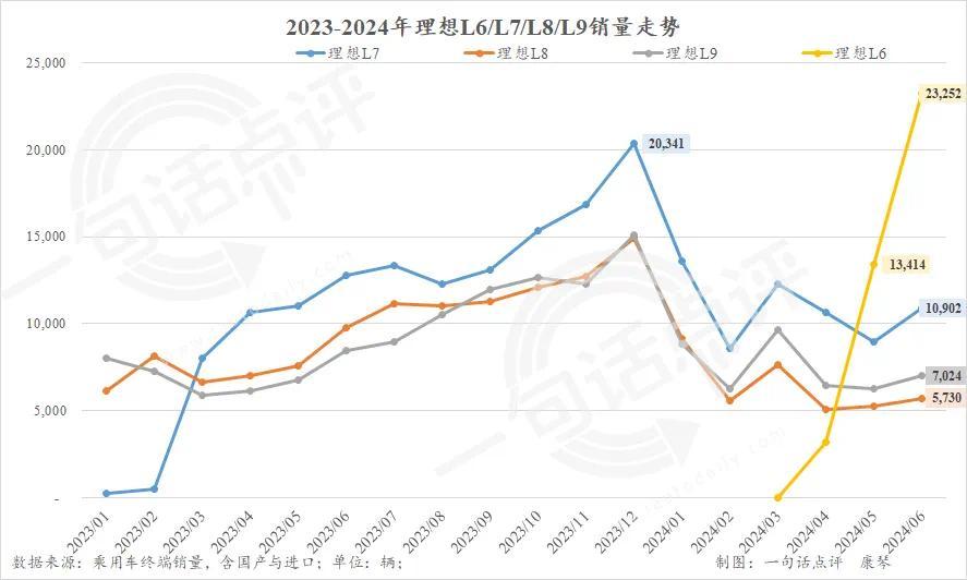 理想能取得如此优秀的成绩,最大的功臣莫过于4月中下旬才上市的全新车型,也是其首款起售价30万元以内的车型——理想L6,5月该车就售出1.3万辆,6月更是以2.3万辆创下理想单一车型的最高月销纪录,几乎贡献了当月品牌销量的一半。