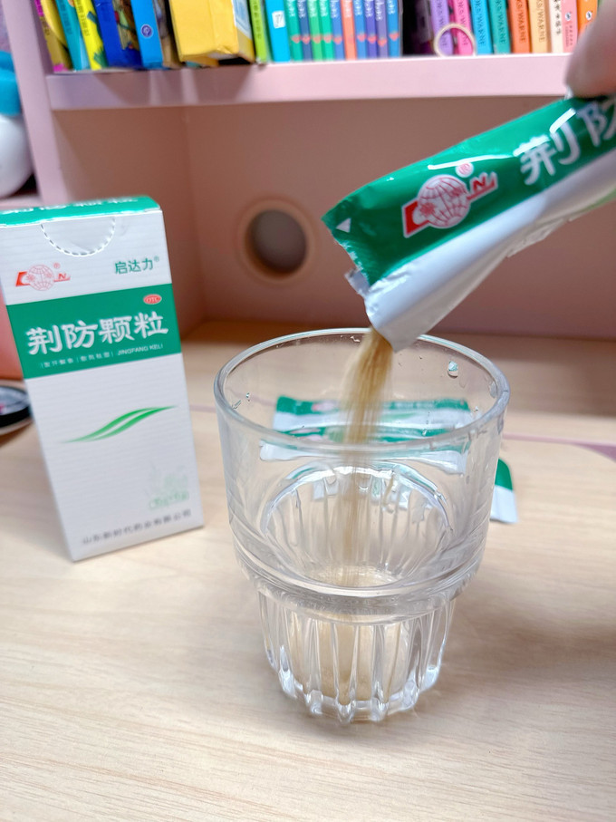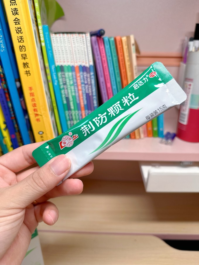 每年的六七八月份都是最难熬的时候,高温和阴雨天气交叉出现,室内环境闷热潮湿,作为一个带娃家庭,家里的空调基本上是整日开着的,但是整天吹空调,孩子就很容易着凉感冒,前几日早晨起来宝宝就有点鼻塞,还有点轻微的流鼻涕,最近小区里的孩子流感挺多的,为了避免孩子的情况加重,赶紧给她冲了一包启达力荆防颗粒。