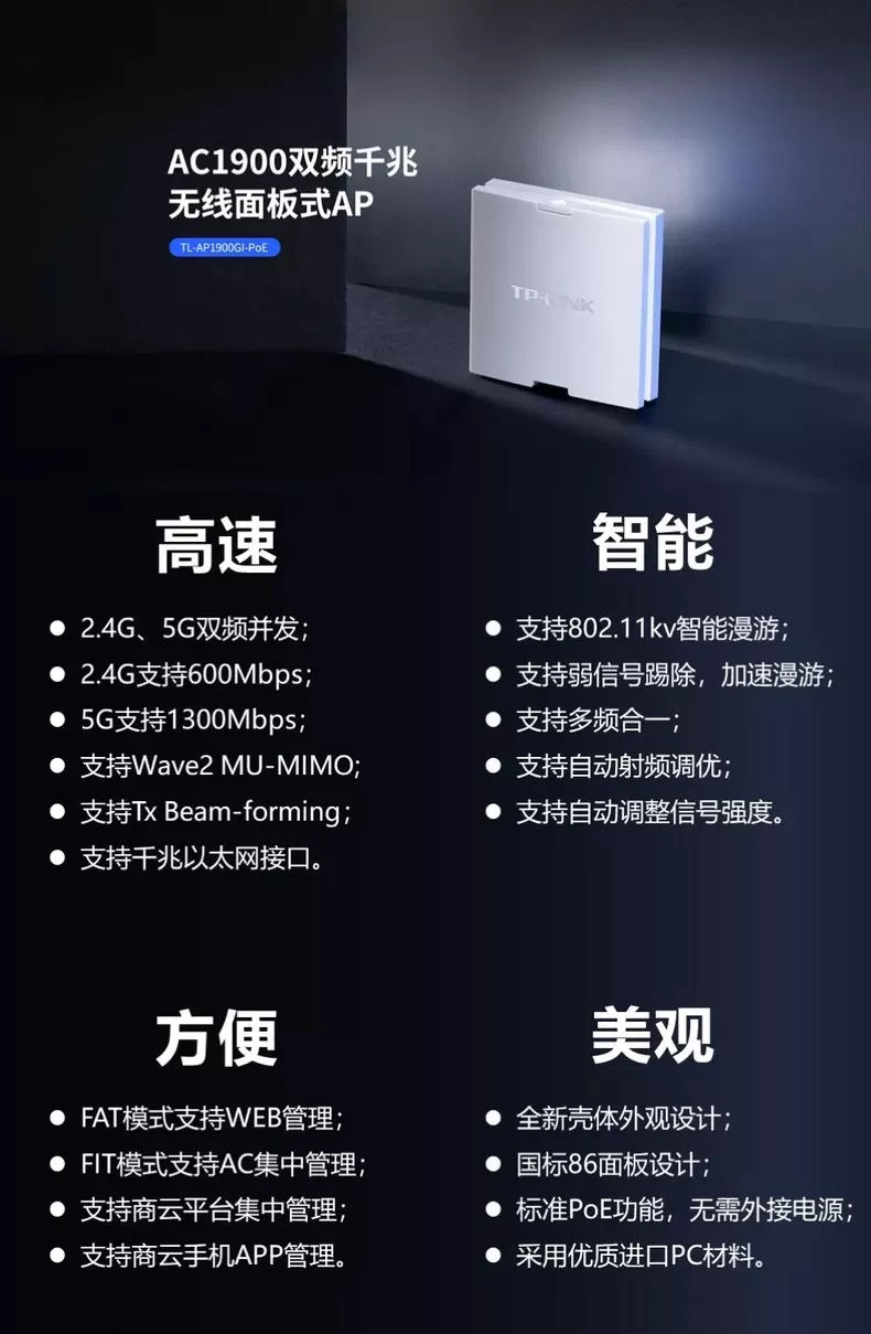 1⚡TPlinkAP面板TL-AP1900GI-PoE无线路由器评测TPlink路由器怎么样?阅读 (22)赞 (0)