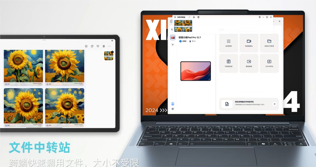 此外,联想小新Pad Pro 12.7支持AI互联自带联想小天AI助理,支持分布式跨端文件系统,可跨端调用文件、平板App跨屏实时传送到PC,同时支持PC调用平板屏幕,秒变无线副屏。