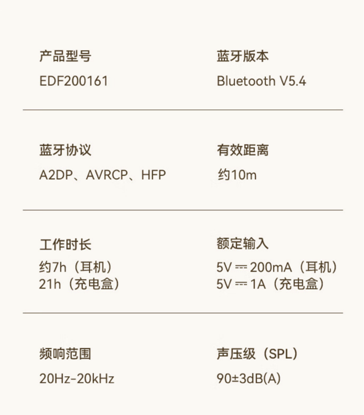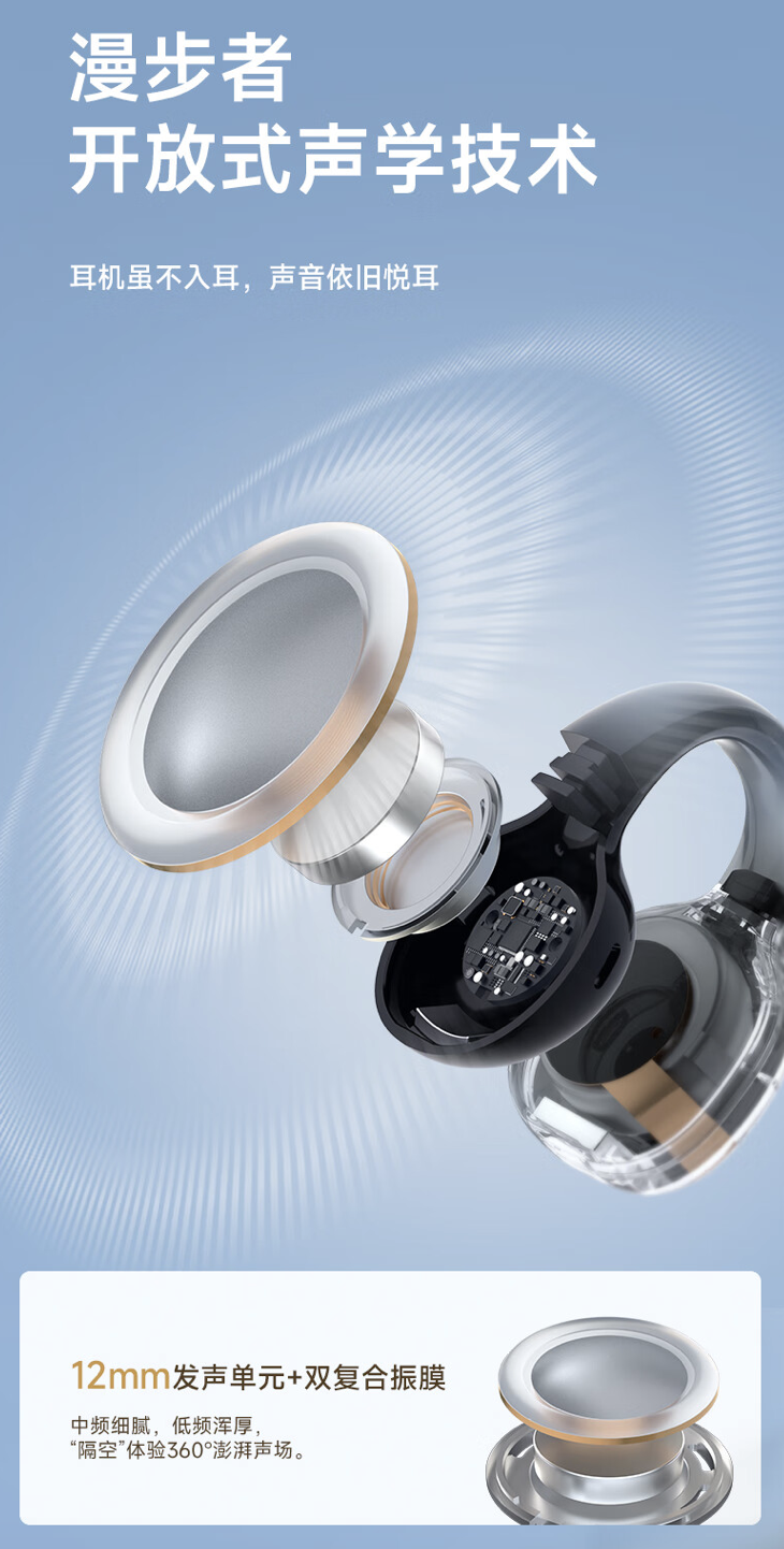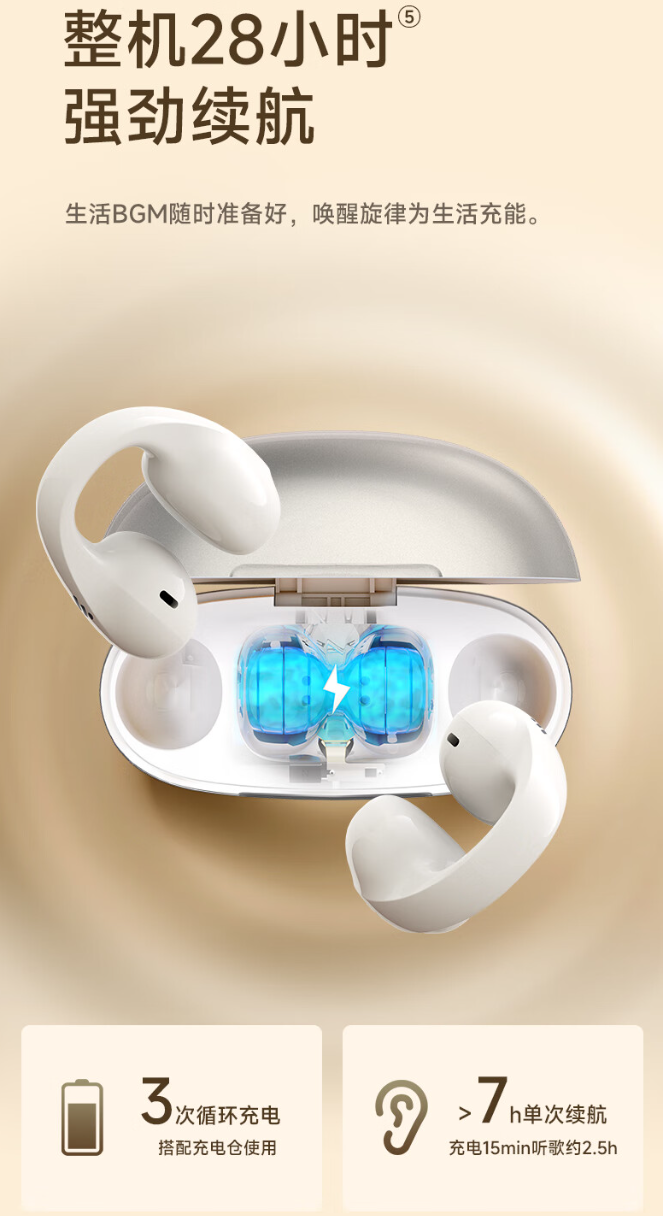 该耳机支持蓝牙 5.4,可实现双设备连接、设备无缝切换功能;配备 12mm 单元 + 双复合振膜;支持智能声道检测功能,可实现左右耳随意佩戴,整机 28 小时续航。