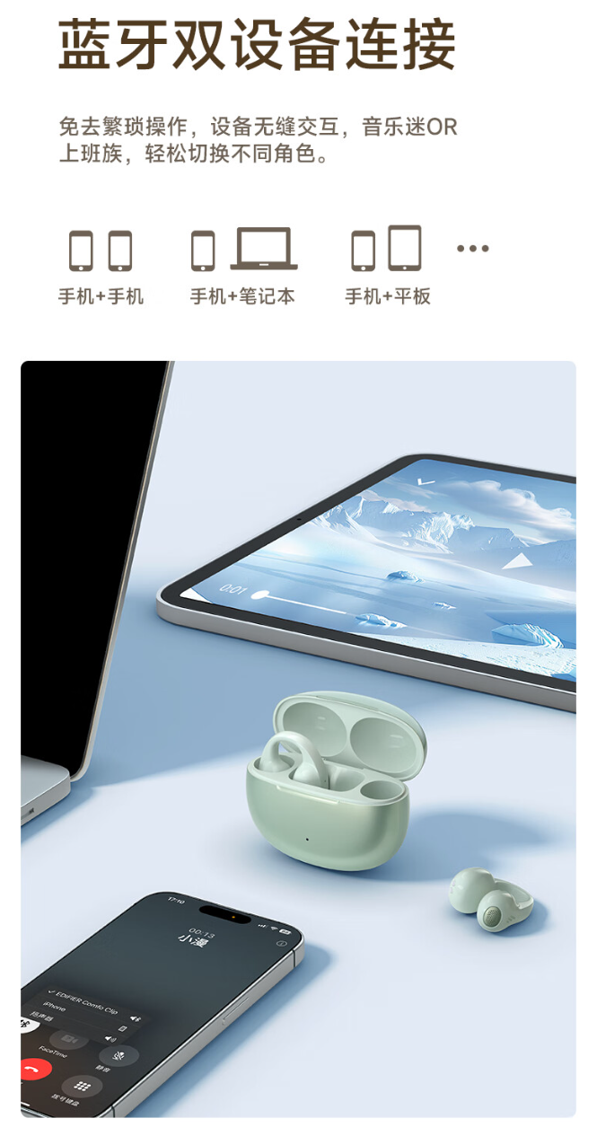 据 7 月 29 日最新媒体消息,漫步者 Comfo Clip 开放式蓝牙耳机现已开售,支持双设备连接、智能声道检测,提供整机 28 小时续航,首发 359 元。
