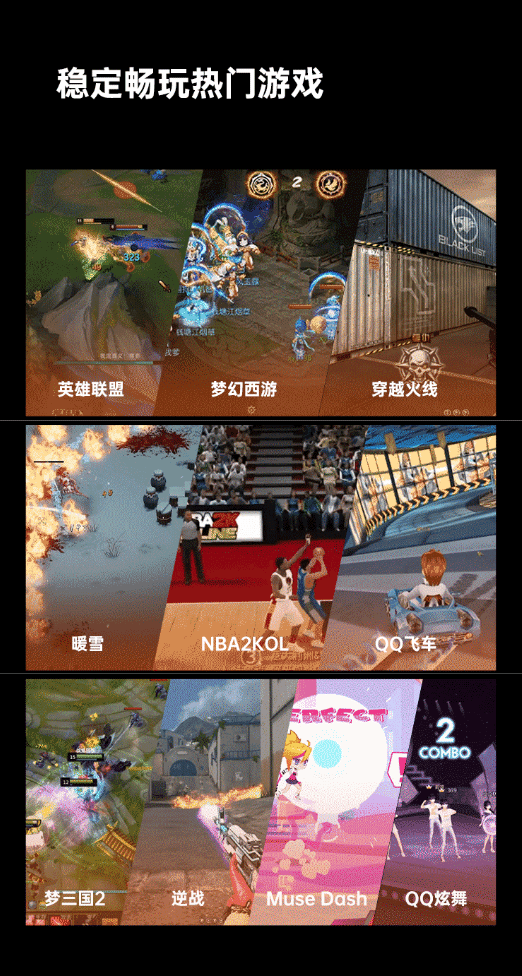 同时,配备“摩卡游戏中心”,官方认证能够稳定运行《英雄联盟》、《梦幻西游》、《穿越火线》、《暖雪》、《NBA2KOL》、《QQ飞车》等多款热门游戏。