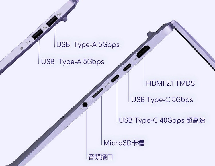其他方面,支持WIFI6E 无线,内置75Wh 电池,可续航14天左右,快充具体没说,只说充电30分钟能用一天。机身厚13.9mm,重约1.3公斤,出厂经过多重测试。扩展包括:双UBS-C,HDMI、双USB-A、读卡器等。