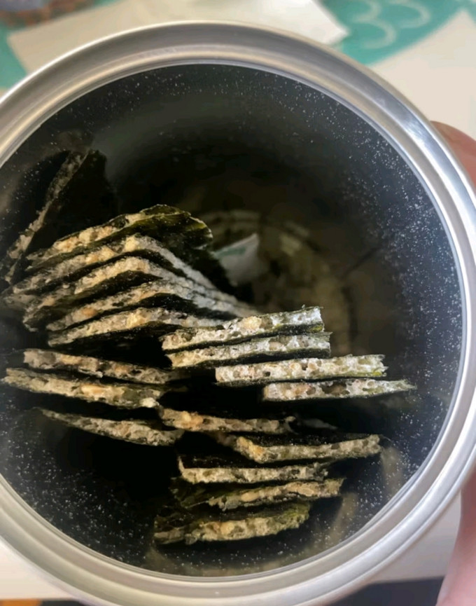 这个也是很多人推荐的了。这款海苔也是夹心的,但不是奶酪而是花生芝麻之类的。海苔用的是条斑紫菜,这个是比较贵的。还添加了麦芽糖,海藻糖和一点点酱油。吃起来是很不错啊,别问我怎么知道的。。。