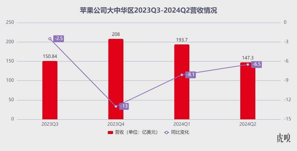 这一连串优异的财务数据几乎全部高于此前市场的一致预期,但有一项数据却格外地刺眼:大中华区同比下跌6.5%至147.3亿美元,成为苹果唯一下跌的主要市场。