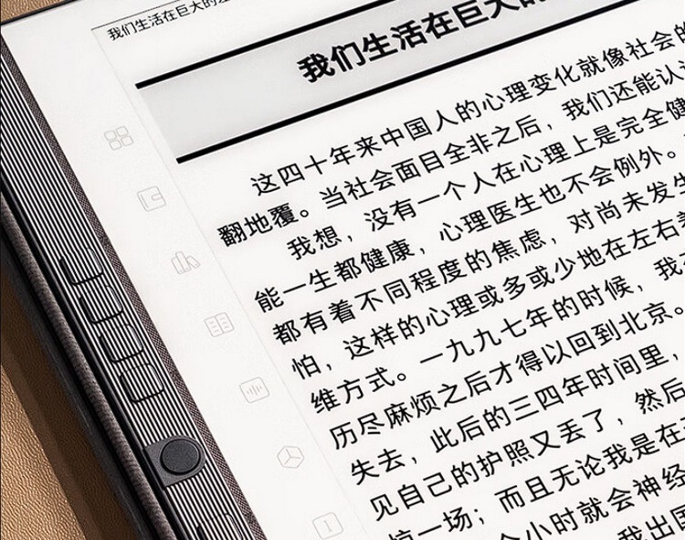 配备10.3英寸高清 Carta1200 墨水屏,PPI 300 像素密度,分辨率 1860 x 2480;重点是延续 N10 系列开创性减屏层设计,对电容屏和导光板做减法,墨水屏上方屏层厚度减少31%,让观感更通透清晰,屏幕亮度更白,字体更黑,对比度叫上代提升21%。另外,支持256级灰阶显示,画面过渡细腻自然。