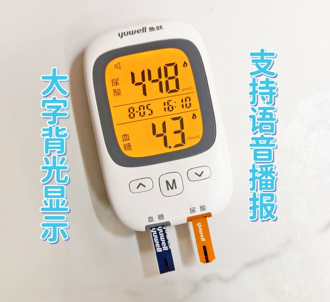 因此,我精心挑选了〈b〉鱼跃GU200血糖尿酸检测仪作为家人身体监护的小帮手!区别于普通尿酸仪的单一功能,这款机器可同时测量尿酸和血糖,一机双测!且操作便捷简单,初次使用也能迅速学会,还具有语音播报功能,特别适用于老年人。希望通过鱼跃GU200的定期监测,起到提醒老人注意饮食调整的作用,引导老爸可以平时关注一下饮食调整,逐渐养成健康的生活习惯。