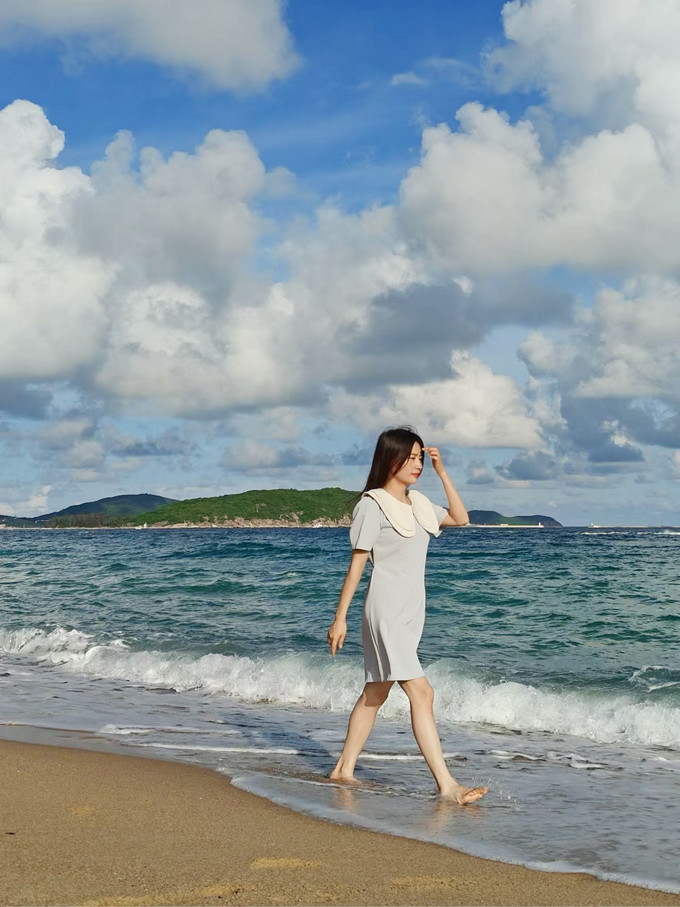 风格方面,无论是纯白的白月光吊带裙,还是有点可爱的娃娃裙,都是海边度假最理想的装扮,长度也不会让小个子望而却步。海浪轻拍,裙摆随风飘动,每一步都散发出清纯的白月光气质。搭配一顶草帽,再加上一双舒适的凉鞋,就能轻松打造出完美的海边造型,配合蓝天白云、金色沙滩,随手一拍都是大片。