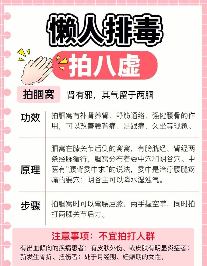 ⚠️有外伤者,孕妇,儿童,处于月经期等就不要拍打八虚哦~