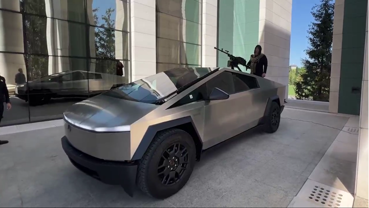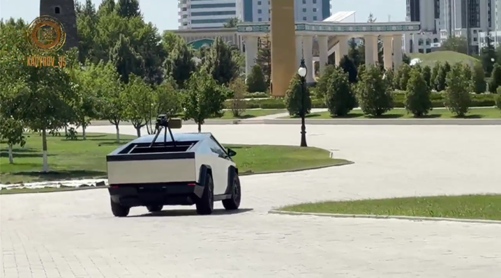 据美联社描述,卡德罗夫在其即时通讯软件Telegram频道上发布一段视频,画面中的卡德罗夫驾驶着赛博皮卡兜风,还站在卡车后部的机枪前,身上挂着弹药带。