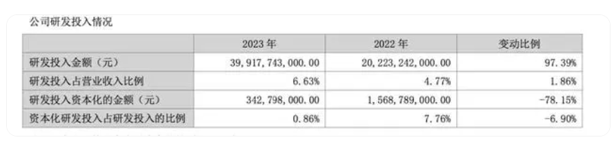 2023年,比亚迪研发投入近400亿元,同比增长97%。2023年,公司相继发布易四方、云辇、DMO超级混动越野平台等多项颠覆性技术。尤为注意的是,今年初比亚迪发布新能源汽车智能化发展全新战略——整车智能,通过璇玑架构,实现电动化与智能化高效融合,引领新能源汽车智能化变革。
