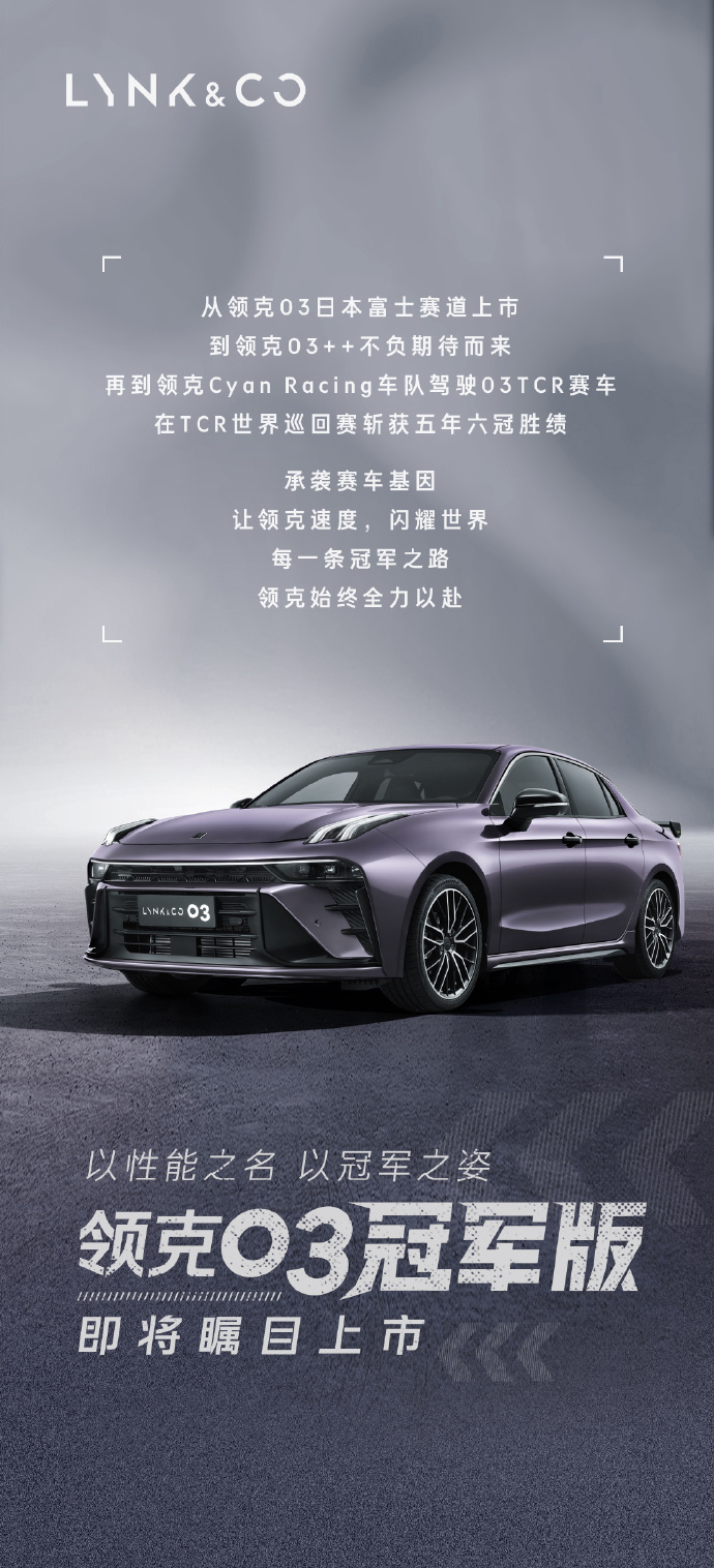 8 月 23 日消息,领克汽车近期对旗下新款车型 —— 领克 03 冠军版开启密集预热。今天上午,官方公布了该车的上市时间 ——8 月 28 日 18 时。