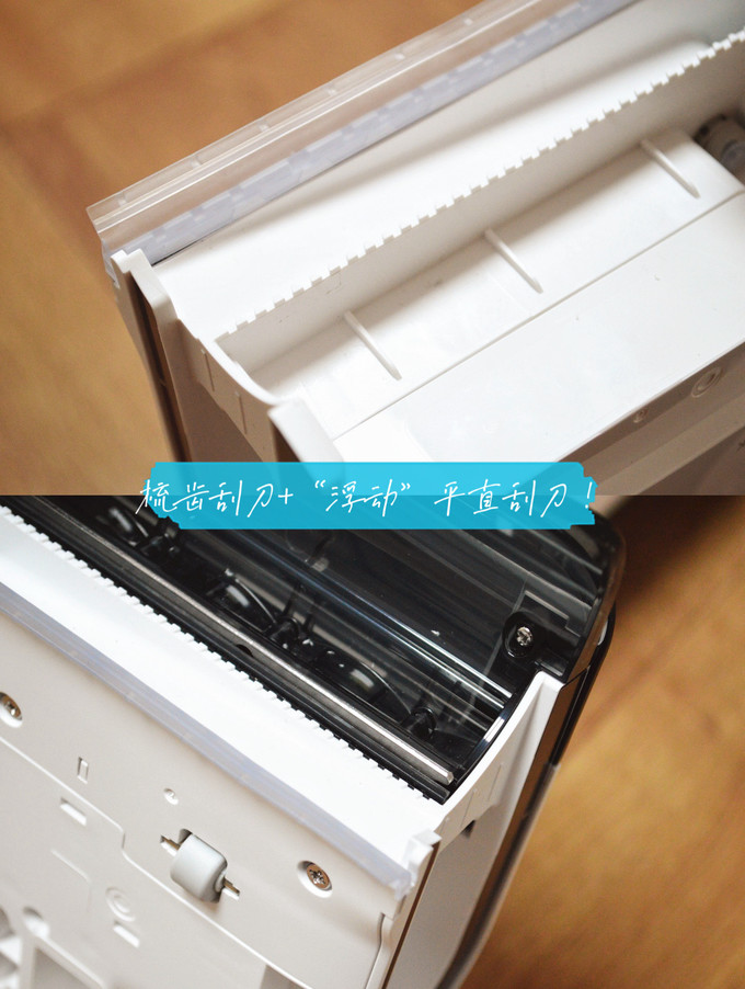 梳齿刮刀可以解决清洁过程中的滚刷上的毛发缠绕问题,而可浮动的平直刮刀可以挤去滚刷上的污水,让滚刷更加干净的同时,还能够很好地控制水渍,避免地上湿漉漉的打滑,也避免走过去留下脚印。