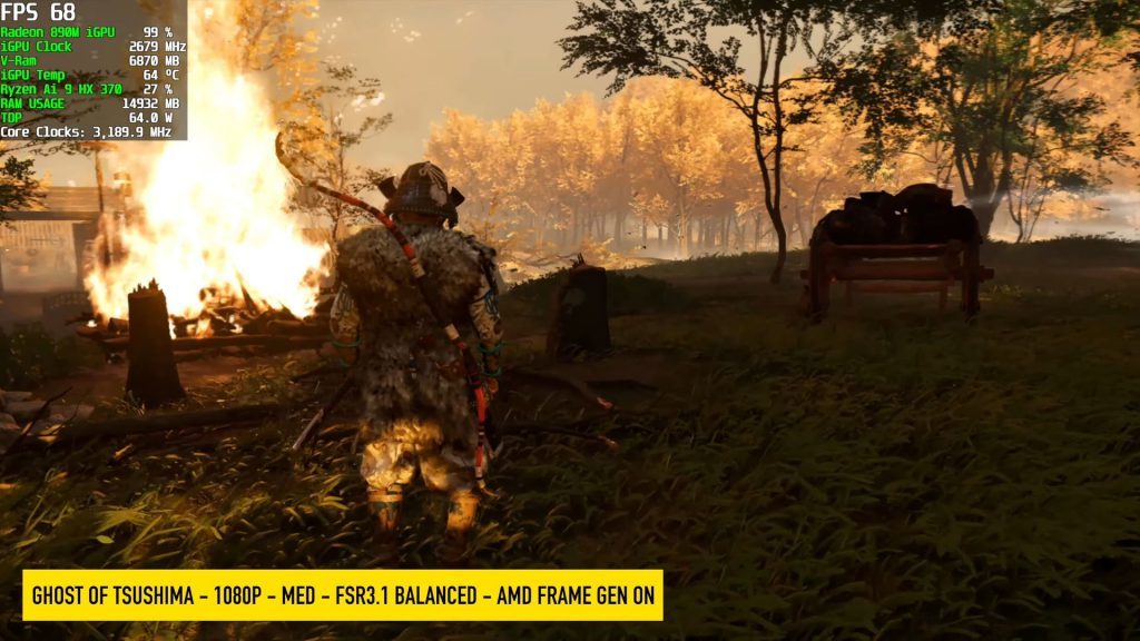 以上成绩是在开启FSR或帧生成技术的情况下测试的,所以核显跑的帧率也相当可观,能够流畅搞定很多游戏,之前锐龙7040/8040系列上无法实现的,这次没问题。