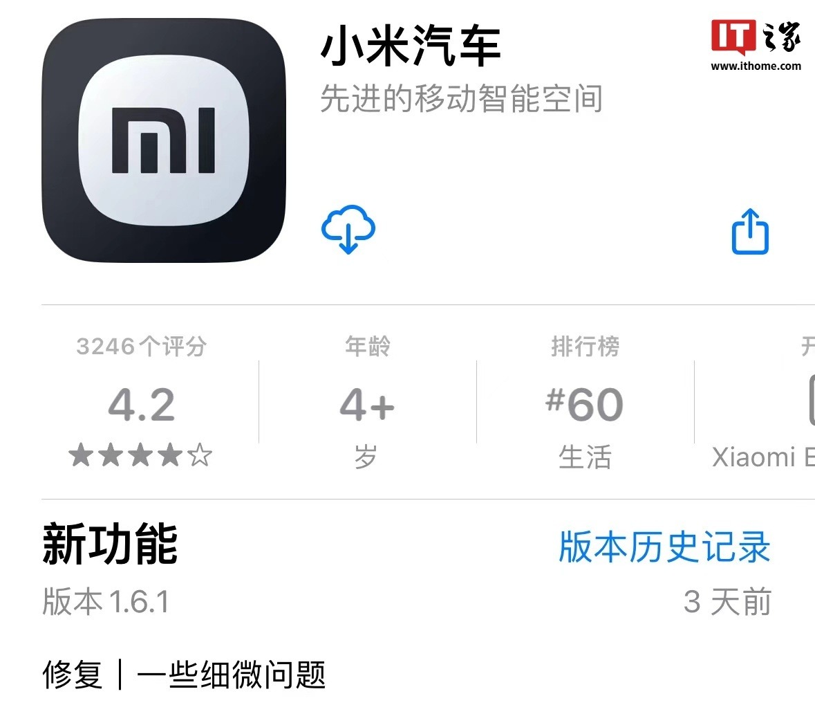 9 月 3 日消息,小米汽车 App 获推 1.6.0 版本升级,新增车控自定义功能排序、共同驾驶员主动选择解绑车辆等功能(iOS 端已于 3 天前更新至 1.6.1 版本)。