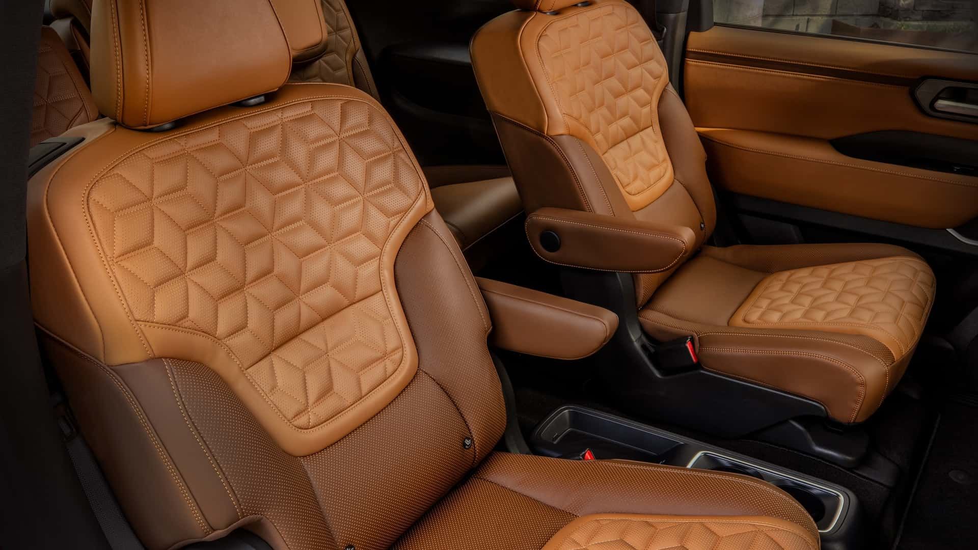 新车座舱配备了两个 12.3 英寸的显示屏,SL 及以上车型可使用地图、助手和 Play Store 等谷歌功能。Pro-4X、Platinum 或 Platinum Reserve 车型则配备了双 14.3 英寸显示屏,功能更多。此外,新车全系标配无线 Apple CarPlay 和 Android Auto。该车提供 6 座 / 7 座两种布局,后两排座椅可纯平放倒。