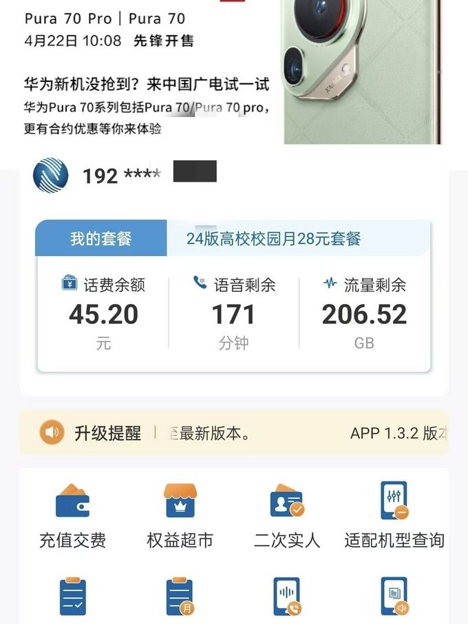 冲着营业厅能选号,今天本来打算去广电营业厅办理惠民年卡,营业员推荐办理高校校园卡,说开学季这个月才能办,并没有限定年龄或者学校区域才能办理。看了下,确实比惠民年卡优惠,流量通话都更多,价格一年就贵12块钱,选号后办理了一张。用微信小程序测速下,速度还行,应用商店下载能到十几兆字节,打了几个电话,语音还清晰,我并不在校园生活,看了下流量计费是校园流量,不明白广电是怎么回事。大家想办广电卡的,可以到当地营业厅看看,也许有意外收获。