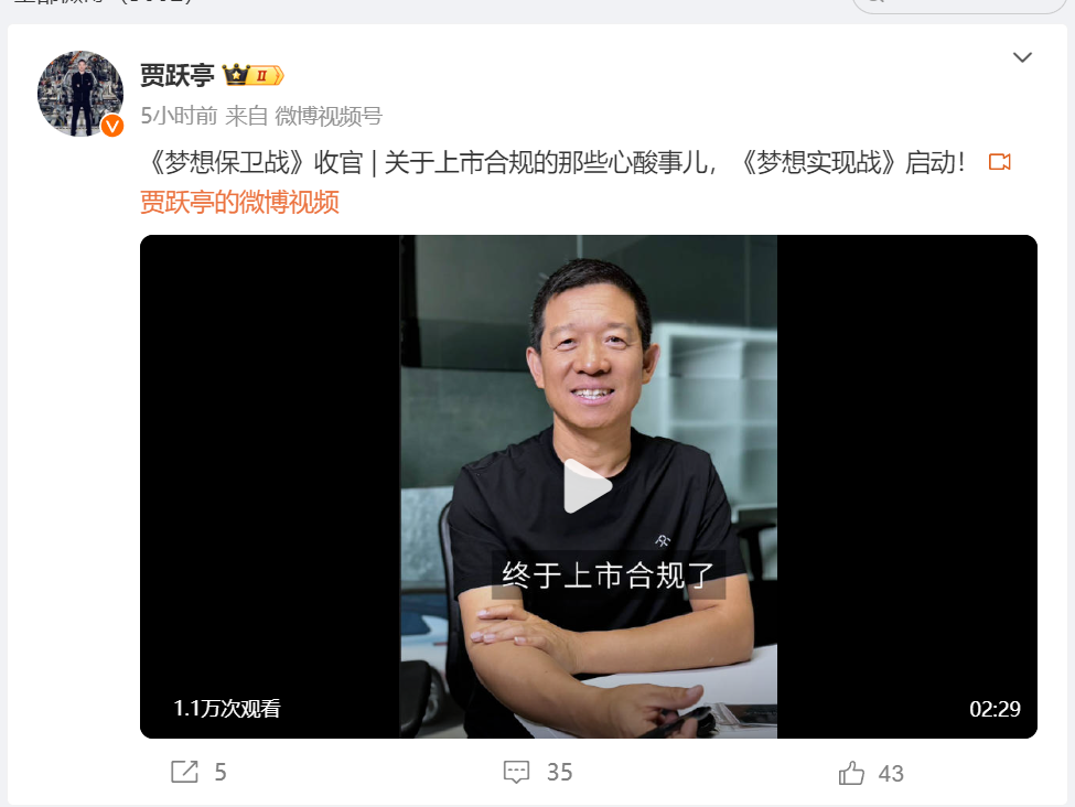 贾跃亭一句话,就让法拉第未来的股价瞬间翻了个身。