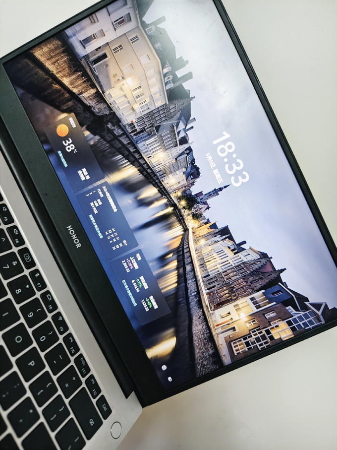 💯因为拥有荣耀独有的OS Turbo技术的加持以及60Wh大容量电池,在日常的使用中续航时间高达14个小时,基本上外出工作带上它绝对不会有续航焦虑。整机的重量只有1.4KG,手感轻巧,携带起来非常方便。而且金属机身耐用性非常好,不用担心外壳轻易就会被刮花。