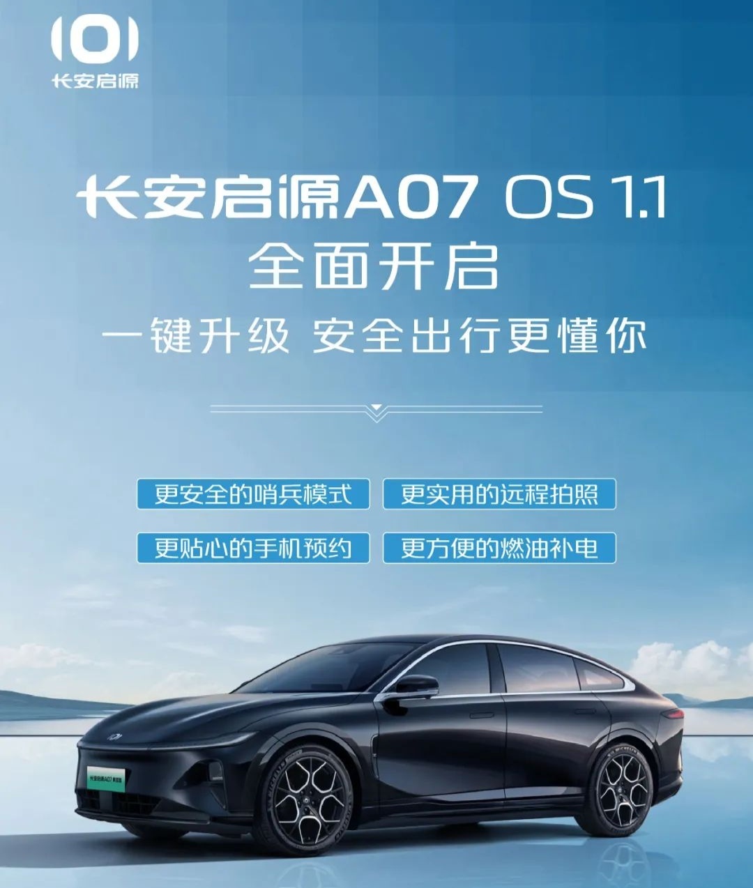 据此前报道,长安启源 A07 于今年 8 月开启 1.1 版本系统内测招募,附此次更新内容如下: