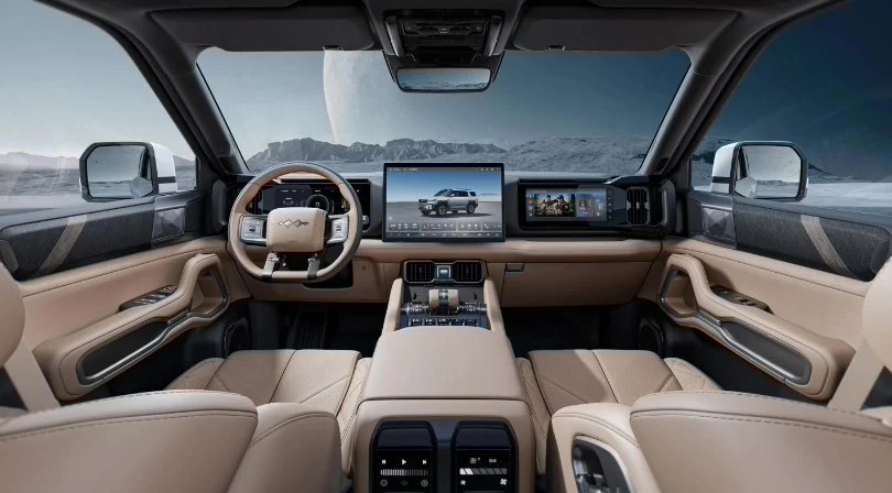 据官方介绍,该车百公里加速仅需 4.8s、超长 1200 公里综合续航里程,采用智能电四驱系统。该车拥有 550kW 系统综合功率,近 750 匹马力,宣称“媲美传统 6.0L 燃油发动机”。此外,该车采用 CTC 电池底盘一体化技术,非承载式车身架构。
