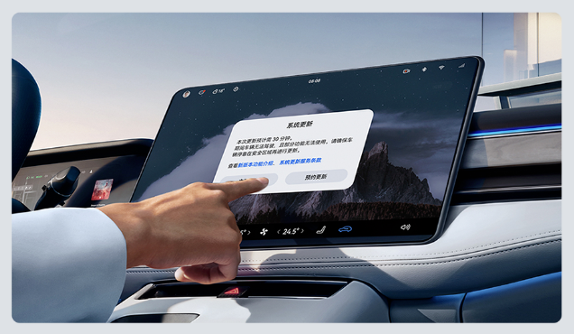 下载完成后,从中控屏进入“设置 > 系统 > 更新与重置 > 系统更新”或从“通知中心”进入,设置更新计划