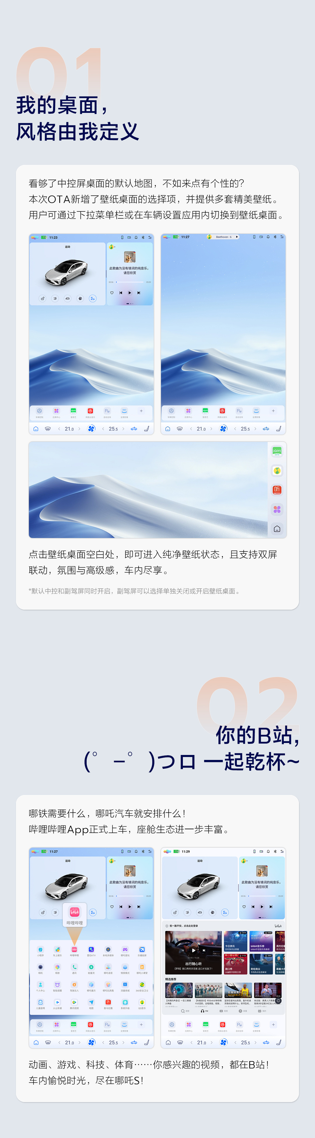 9 月 17 日消息,哪吒汽车今日官宣,S 车型第 9 次 OTA 升级(版本号 V1.10.4)今日起开启分批次推送。新版本拥有 10 项全新功能,优化 69 项体验,支持桌面风格自定义、媒体源切换等功能。