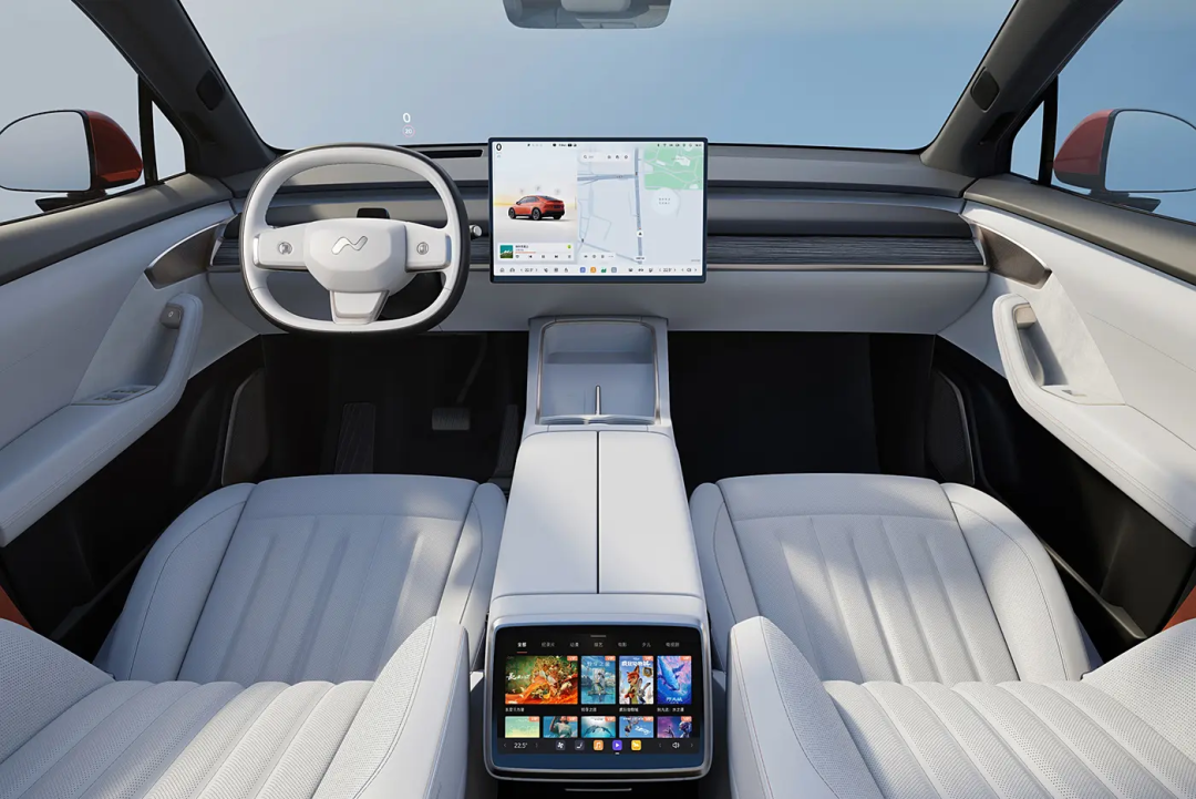 但在内饰这块,就能看出和蔚来车子的差距了。L60 只有 HUD ,没有仪表,也没有 NOMI ,仪表台少了一个小机灵。
