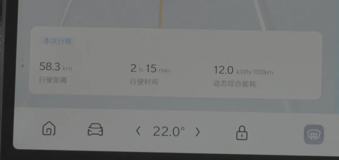 我们拿了一台单电机版,实测开了一段 58km 的路程,综合电耗是12kWh/100km 。讲真,这个水平确实值得一吹。